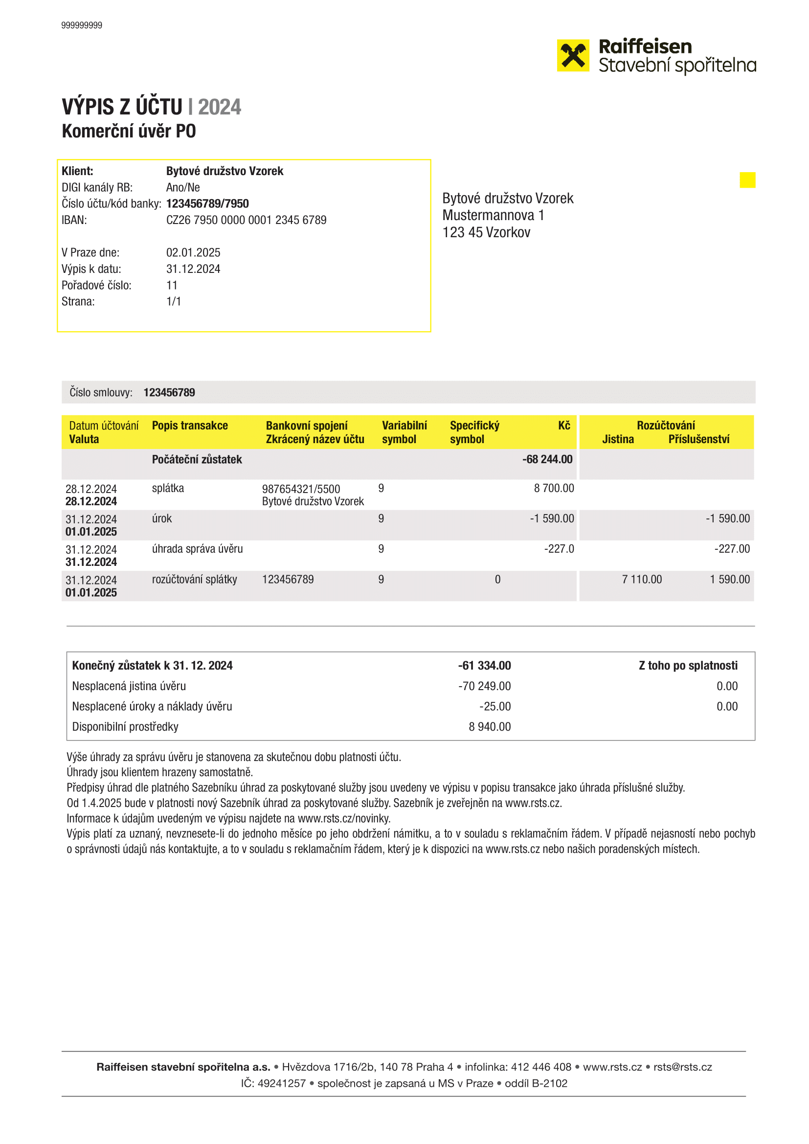 Konečný zůstatek na úvěrovém účtu k 31.12.2024.