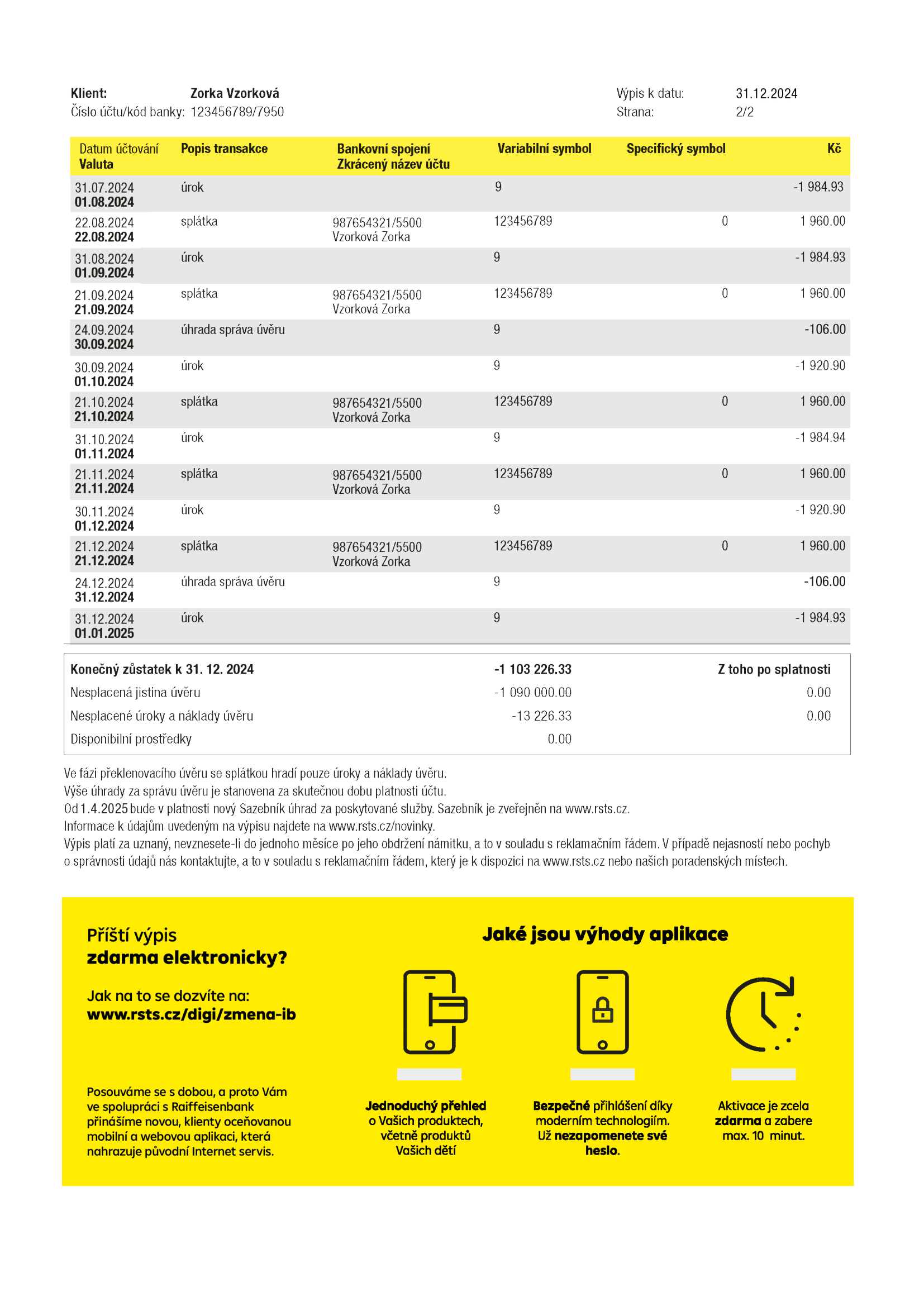 Konečný zůstatek na úvěrovém účtu k 31. 12. 2024.