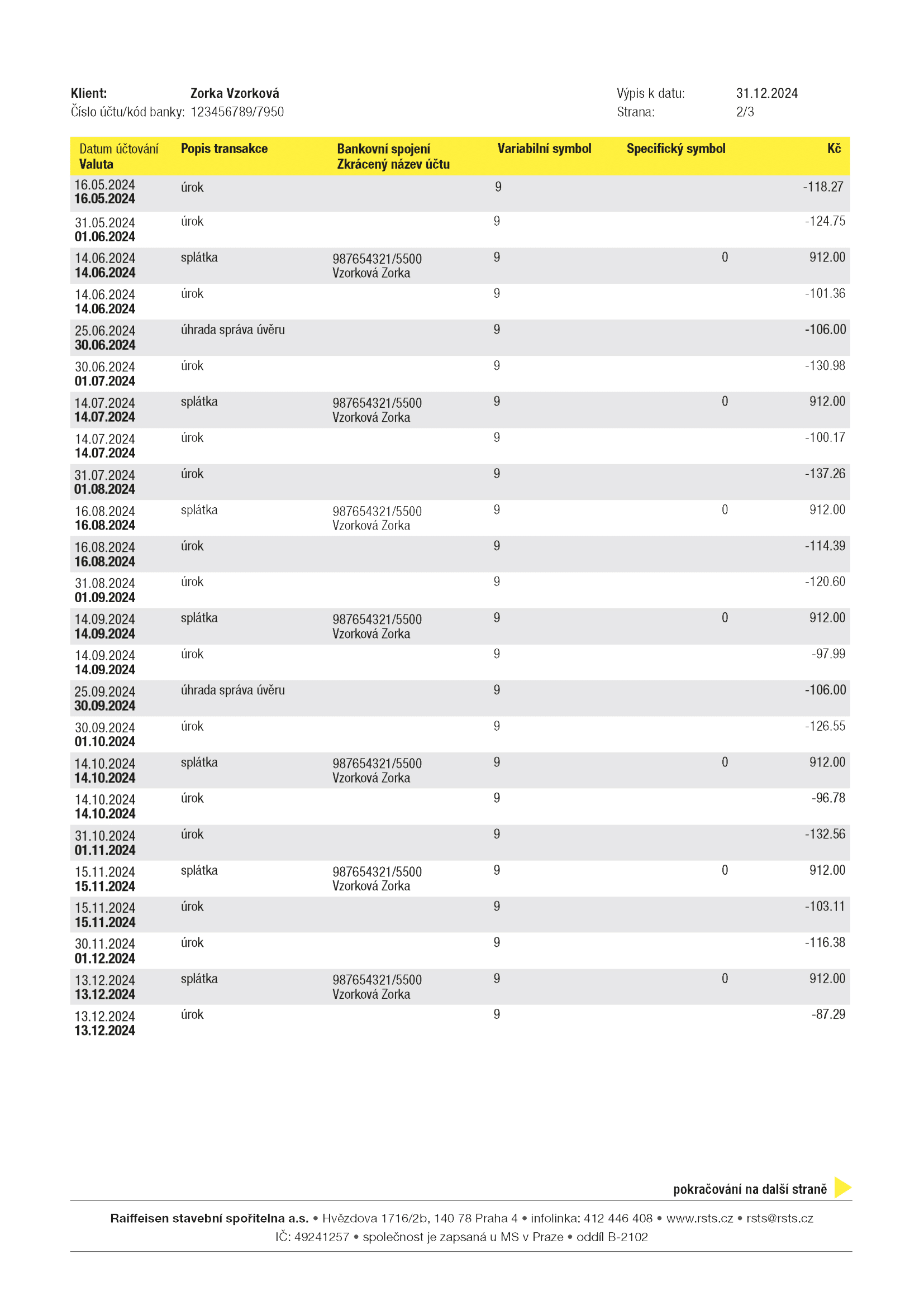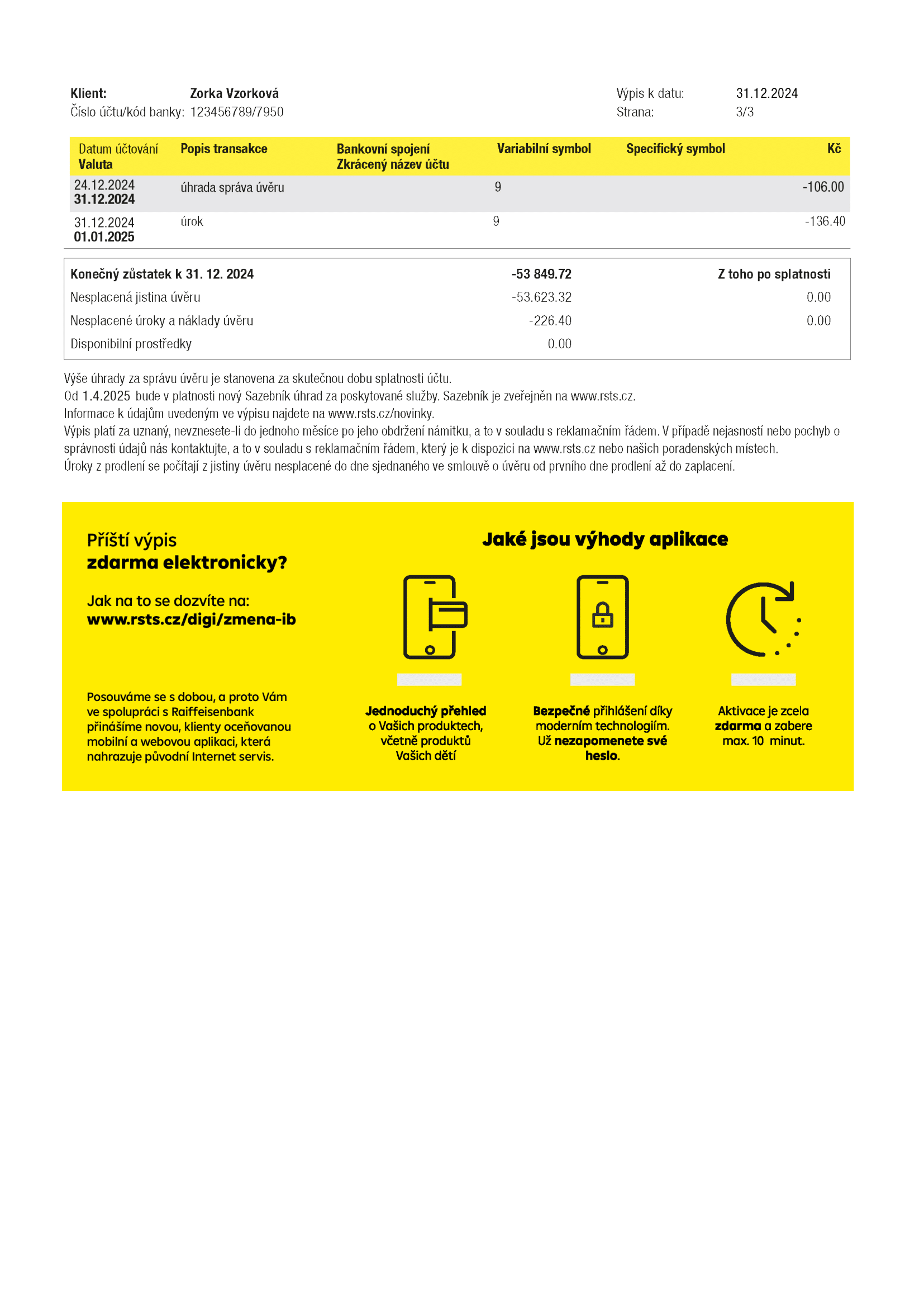 Konečný zůstatek na úvěrovém účtu k 31. 12. 2024.
